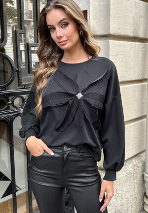 Stretch Flower Sweater Zwart