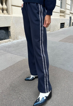 Stretch Straight Broek Met Bies Navy