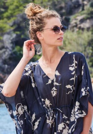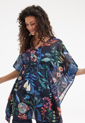 Kaftan Lagoon Dark blue Botanic spice print