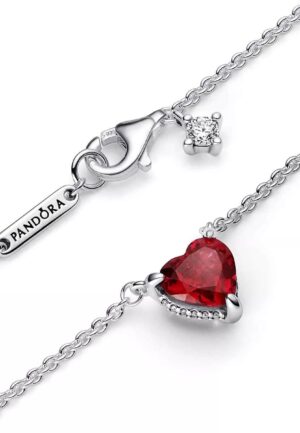 Pandora Kettingen – Heart sterling silver collier with cherries jubile in red