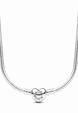 Pandora Kettingen – Snake chain sterling silver necklace with heart cl in silver