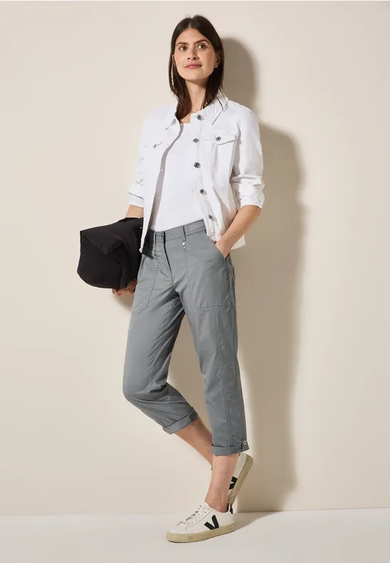 Deze cargobroek van CECIL voor dames combineert een comfortabele pasvorm met functionele details. Zij- en opgestikte zakken zorgen voor een casual look. De katoenmix met stretch maakt hem bijzonder comfortabel om te dragen.