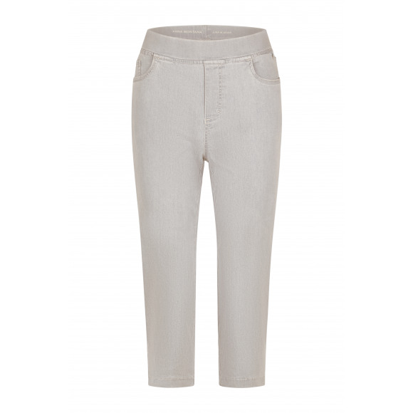 Broek van Anna Montana in een lichtgrijze wassing, perfect voor wie comfort en een verzorgde uitstraling wil combineren. Deze dames jeans heeft een elastische tailleband en een praktisch pull-on model, waardoor hij heerlijk zit en makkelijk aan te trekken is. De rechte pijp en subtiele denim look zorgen voor een tijdloze uitstraling die moeiteloos te combineren is in iedere garderobe.