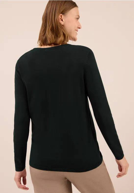 Met zijn V-hals en zachte katoenmix is deze gebreide trui van CECIL voor dames een echte feelgood-trui. In een effen kleur en met klassieke geribde boorden aan de zoom en mouwen, past hij perfect bij jeans of een rok. Een comfortabele basic voor je garderobe.