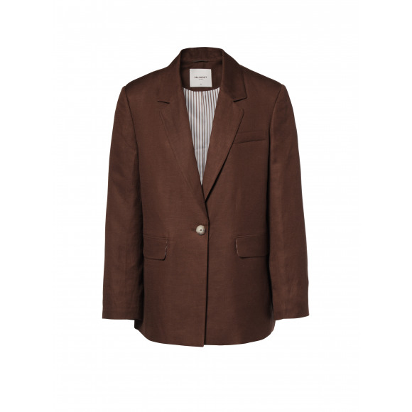 * Details: warme bruine kleur, klassieke tailoring, gevoerd model