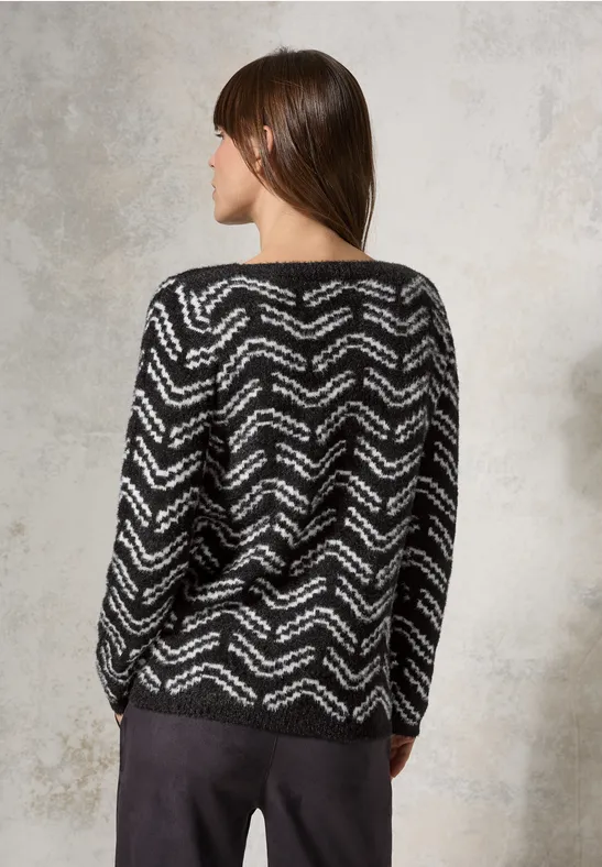 De behaaglijke jacquardtrui van CECIL voor dames is een echte blikvanger met zijn grafische patroon. De ronde hals en lange mouwen zorgen voor een comfortabele pasvorm, terwijl de zachte materiaalmix garant staat voor maximaal comfort. Een perfecte trui voor ontspannen en stijlvolle dagen.