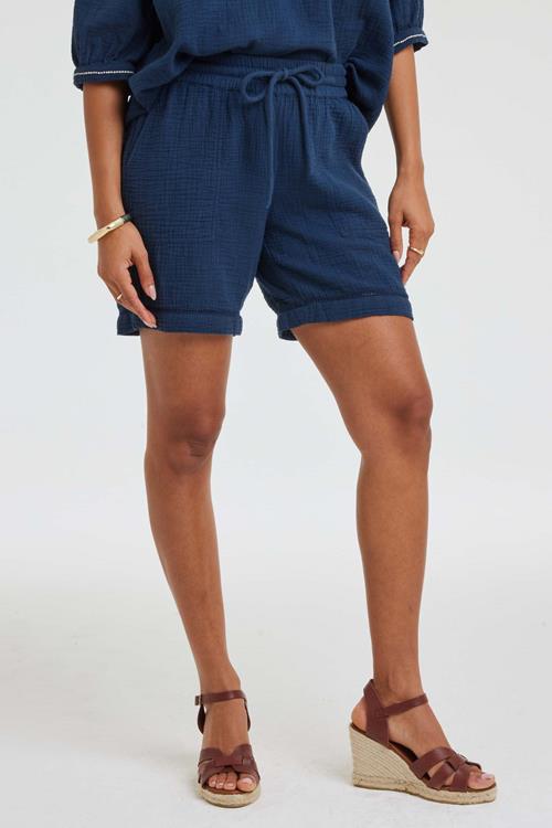 Casual Comfort – Bermuda Pietra Dark blue De Bermuda Pietra Dark blue is jouw perfecte metgezel voor zonnige dagen en warme nachten. Gemaakt van 100% katoen, biedt deze blauwe korte broek ultiem comfort en ademend vermogen. Het regular waist model en de elastische tailleband met koord zorgen voor een comfortabele pasvorm, terwijl het opgerolde nepdessin bij de zoom een casual, maar stijlvolle uitstraling geeft. Gemaakt van hoogwaardige stof Deze korte broek is vervaardigd uit 100% katoen, wat bekend staat om zijn natuurlijke zachtheid en duurzaamheid. Het materiaal is licht en ademend, waardoor je je de hele dag fris voelt, zelfs op de warmste dagen. Katoen is ook makkelijk te onderhouden, waardoor je langer kunt genieten van deze tijdloze klassieker. Stijladvies De Bermuda Pietra Dark blue combineert moeiteloos met jouw favoriete zomergarderobe. Voor een verfijnde look, draag hem met een leuke blouse. Voeg een paar sandalen of sneakers toe voor een ontspannen uitstraling tijdens een dagje uit. Wasvoorschrift Was instructie: Was de Bermuda op 30 graden om de stof en kleur in topconditie te houden. Vermijd het gebruik van bleekmiddel voor een langere levensduur. Droogvoorschrift: Hang het kledingstuk op en laat het aan de lucht drogen. Plaats het niet in de droger om krimpen of beschadiging te voorkomen. Strijkvoorschrift: Strijk de korte broek op lage temperatuur om de stof glad en netjes te houden, zonder de vezels te beschadigen. Met de Bermuda Pietra Dark blue breng je stijl en comfort samen, perfect voor iedere zomerse gelegenheid.