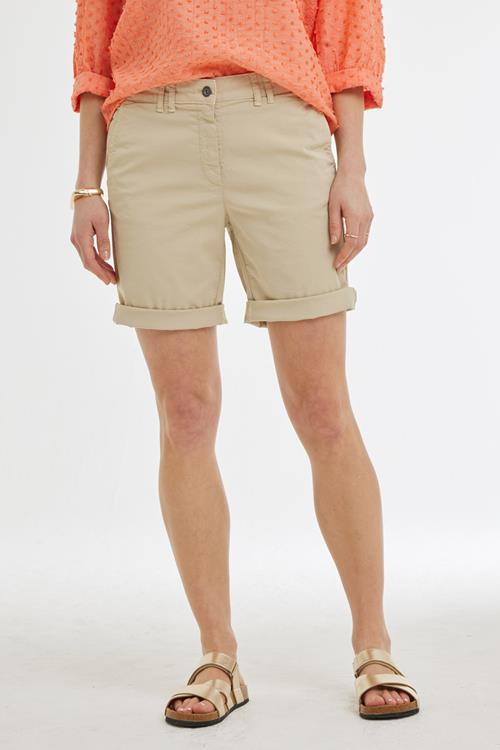 Stijlvolle Vrijheid met Bermuda Turner Light sand De Bermuda Turner Light sand biedt je de perfecte combinatie van stijl en comfort. Deze beige/bruine korte broek, ideaal voor zonnige dagen, heeft een regular waist en handige riemlussen. Met de ritssluiting is praktisch gemak gegarandeerd. Laat je verrassen door de veelzijdigheid van deze tijdloze klassieker, die moeiteloos geïntegreerd kan worden in je dagelijkse garderobe. Gemaakt van hoogwaardige stof Het materiaal van de Bermuda Turner Light sand bestaat uit 97% katoen en 3% elasthan, wat zorgt voor een fijne mix van comfort en elasticiteit. Het ademende katoen houdt je fris en koel, terwijl de elasthan ervoor zorgt dat de broek zijn vorm behoudt. Geniet van de vrijheid van bewegen zonder in te boeten op stijl. Stijladvies De Bermuda Turner Light sand is veelzijdig en kan moeiteloos gecombineerd worden met verschillende stijlen. Combineer deze heerlijk luchtige korte broek met een leuke blouse voor een casual en verzorgde look. Voeg een paar stijlvolle sandalen toe en je bent klaar om de dag in stijl tegemoet te gaan. Wasvoorschrift Wasinstructie: Om de kwaliteit van de Bermuda Turner Light sand te behouden, was je deze op 30 graden. Dit helpt de kleur te behouden en het materiaal zacht te houden. Droogvoorschrift: Hang de broek na het wassen uit om te drogen. Vermijd het gebruik van een droger om krimp en slijtage te voorkomen. Strijkvoorschrift: Strijk de Bermuda op lage temperatuur om de stof glad en mooi te houden. Zo ziet de broek er na elke wasbeurt als nieuw uit. Volg deze eenvoudige instructies en geniet langdurig van je Bermuda Turner Light sand, seizoen na seizoen.