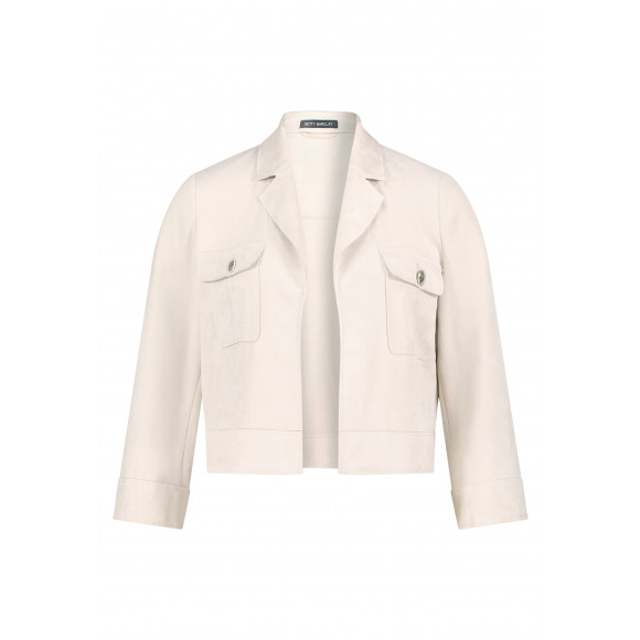 Jasje van merk Betty Barclay. Dit stijlvolle jasje heeft een moderne en elegante uitstraling met een korte, licht boxy pasvorm. De reverskraag en de decoratieve borstzakken met knoop geven het jasje een verfijnde en eigentijdse look. De zachte, soepele stof zorgt voor een comfortabel draaggevoel en maakt dit jasje perfect als lichte layer over een top of jurk.