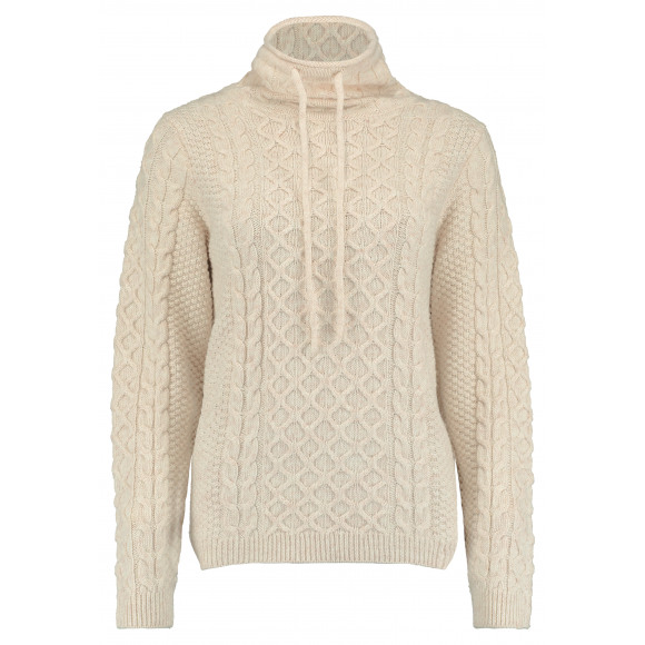 Trui van Bloomings. Deze kabeltrui met col is een heerlijk warme musthave voor het najaar. De rijke kabelstructuur geeft de trui een klassieke en tegelijk eigentijdse uitstraling. De zachte wolmix voelt comfortabel aan en de col met strikkoord zorgt voor een speels detail. Perfect om cozy én stijlvol door de dag te gaan.