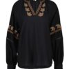 Blouse Cheers Black: Tijdloze Elegantie De Blouse Cheers Black is de perfecte aanvulling voor je kledingcollectie. Deze charmante blouse, met zijn elegante zwart/grijs kleurenschema, heeft lange mouwen en een print die de aandacht trekt. De rechte pasvorm en de V-hals met accent bies geven je een verfijnde uitstraling. Opvallende borduursels en laddertape details, samen met subtiele ruches, maken deze blouse uniek. Bereid je voor op een seizoen vol stijl en comfort! Gemaakt van hoogwaardige stof De Blouse Cheers Black is vervaardigd van een hoogwaardige stof die comfortabel en duurzaam is. Het materiaal voelt zacht aan op de huid en biedt de perfecte combinatie van flexibiliteit en stevigheid. Ideaal voor dagelijks gebruik, of je nu een dag op kantoor doorbrengt of een avondje uit gaat. Het ademende karakter van de stof houdt je aangenaam warm tijdens koelere dagen, waardoor het een veelzijdig kledingstuk is voor diverse gelegenheden. Stijladvies De veelzijdigheid van de Blouse Cheers Black maakt het een must-have in je garderobe. Deze blouse past perfect bij zowel casual als meer formele outfits. Combineer hem bijvoorbeeld met een lekkere broek of een comfortabele jeans voor een stijlvolle look die altijd werkt. Voeg een paar verfijnde accessoires toe en je bent klaar om stralend voor de dag te komen. Wasvoorschrift Wasvoorschrift Voor een lange levensduur van de Blouse Cheers Black was je hem op maximaal 30 graden. Vermijd agressieve wasmiddelen om de kleuren levendig te houden. Droogvoorschrift Niet geschikt voor de droger. Het is het beste om de blouse aan de lucht te laten drogen om de kwaliteit van de stof te behouden. Strijkvoorschrift Strijk op lage temperatuur en vermijd direct contact met de borduursels en decoratieve details voor een langdurig mooi resultaat. Met de Blouse Cheers Black kies je voor stijl en klasse, geschikt voor elke gelegenheid.
