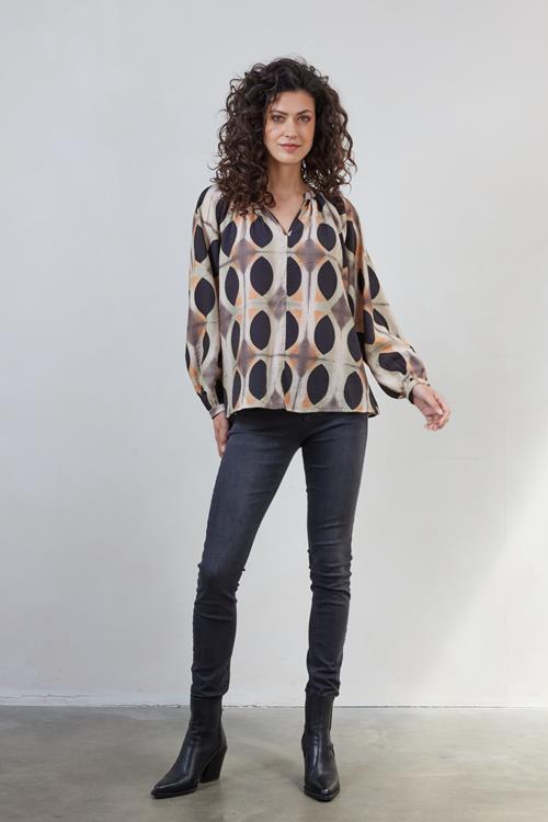 Tijdloze elegantie met de Blouse Cherish Sand Monsoon print Maak kennis met de Blouse Cherish Sand Monsoon print: een veelzijdige damesblouse die perfect je warme garderobe aanvult. Deze blouse combineert een prachtige beige/bruin monsoon print met een rechte pasvorm, lange mouwen en een comfortabele, ronde hals. Het design ademt elegantie en is uitermate geschikt voor de koelere maanden. Gemaakt van hoogwaardige stof De Blouse Cherish Sand Monsoon print is vervaardigd uit een kwalitatieve stof die niet alleen zacht aanvoelt, maar ook duurzaam is. Het materiaal biedt een uitstekende drapeervorm, waardoor de blouse soepel valt en een flatterend silhouet creëert. Bovendien ademend, wat comfort garandeert gedurende de hele dag. Ideaal voor een zorgeloze en stijlvolle look. Stijladvies Deze blouse is een geweldige aanwinst voor elke kast. Draag hem casual met een heerlijke broek of jeans voor een relaxte uitstraling, of style hem chique met accessoires voor een meer verfijnde look. Het veelzijdige kleurenschema maakt het makkelijk om de blouse te combineren met diverse tinten en stoffen. Wasvoorschrift Wassen: Houd de blouse in topconditie door hem op maximaal 30 graden te wassen. Vermijd bleken. Droogvoorschrift: Droog de blouse niet in de droger. Zo behoud je het beste de kwaliteit van de stof. Strijkvoorschrift: Indien nodig, strijk voorzichtig op lage temperatuur om de print en het materiaal te beschermen. Kies voor tijdloze charme en ongeëvenaard comfort met de Blouse Cherish Sand Monsoon print. Een must-have voor de stijlbewuste vrouw die kwaliteit met elegantie combineert.
