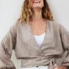 Blouse Chloe in Sand with Joy print: Unieke Stijl voor Elke Gelegenheid Ervaar de perfecte combinatie van comfort en stijl met de Blouse Chloe in Sand with Joy print. Deze blouse biedt een ontspannen pasvorm met lange wijde mouwen en een elegant recht model dat mooi valt. De beige-bruin tinten stralen warmte uit, ideaal voor een seizoen dat vraagt om knusse en stijlvolle kledingstukken. Met een V-hals en subtiele contrastbies is deze blouse een veelzijdige aanvulling op je kledingcollectie. Gemaakt van hoogwaardige stof Deze blouse is vervaardigd van 100% katoen, wat garant staat voor een heerlijk ademend vermogen. Ideaal voor zowel frisse als warmere dagen, biedt het katoen comfort en duurzaamheid. Geniet van het zachte gevoel op je huid en de natuurlijke uitstraling van deze hoogwaardige stof, waardoor je absoluut geniet van bewegingsvrijheid zonder concessies te doen aan stijl. Stijladvies De Blouse Chloe in Sand with Joy print is een veelzijdig stukje dat je moeiteloos kunt combineren voor verschillende gelegenheden. Draag het met een lekkere broek of een stijlvolle jeans voor een casual look. Of kies voor een elegante rok voor een meer verfijnde uitstraling. Met deze blouse raken je mogelijkheden nooit op. Wasvoorschrift Wasvoorschrift: Was je blouse op 30 graden om de stof en de kleuren te behouden. Droogvoorschrift: Vermijd het gebruik van de droger. Laat de blouse aan de lucht drogen voor de beste resultaten. Strijkvoorschrift: Strijk de blouse op een lage temperatuur voor een gladde en nette afwerking. Gun jezelf de luxe van de Blouse Chloe in Sand with Joy print en ontdek hoe veelzijdig en comfortabel je garderobe kan zijn. Deze blouse kan gemakkelijk jouw go-to item worden voor elke gelegenheid.