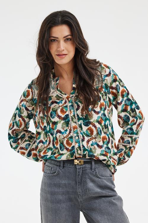 Blouse Eve Offwhite Bengala Print: Elegant en Veelzijdig Ontdek de Blouse Eve Offwhite Bengala Print, een stijlvolle en uitzonderlijke toevoeging aan je kledingcollectie. Deze witte blouse met lange mouwen combineert een elegante V-hals met een speelse Bengala print. Dankzij de rechte pasvorm en de subtiele laddertape details, biedt de blouse een perfecte balans tussen chic en comfortabel, ideaal voor elke gelegenheid. De handige knoopsluiting zorgt voor een moeiteloze look, terwijl de lange mouwen je warmhouden tijdens de koudere dagen. Gemaakt van Hoogwaardige Stof De blouse is gemaakt van 100% viscose, een hoogwaardig materiaal dat bekendstaat om zijn zachte en ademende eigenschappen. Viscose voelt luxueus aan op de huid en past zich moeiteloos aan je lichaamsvorm aan, waardoor het perfect is voor dagelijks gebruik. Bovendien zorgt het lichte materiaal ervoor dat je de blouse het hele jaar door kunt dragen. De ademende stof houdt je koel en comfortabel, zelfs op warme dagen. Stijladvies Met de Blouse Eve Offwhite Bengala Print kun je eindeloos combineren. Draag deze veelzijdige blouse met een comfortabele broek of een casual jeans voor een moeiteloze, maar toch verfijnde look. Voeg enkele accessoires toe voor een persoonlijke touch. Deze blouse is je go-to keuze voor zowel werk als informele bijeenkomsten. Wasvoorschrift Wasinstructie: Het is belangrijk om de blouse met zorg te wassen. Was het op maximaal 30 graden om de kwaliteit van de stof te behouden. Droogvoorschrift: Droog de blouse niet in de droger om krimp of beschadiging te voorkomen. Het is het beste om het hangend te laten drogen. Strijkvoorschrift: Strijk de blouse op lage temperatuur om gladheid en een nette uitstraling te garanderen. Vermijd bleekmiddelen en chemisch reinigen om de levendige print en zachte structuur te behouden. Met de Blouse Eve Offwhite Bengala Print voeg je een elegante en functionele klassieker toe aan je garderobe.
