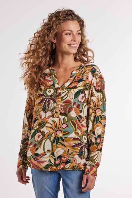 Frisse Elegantie met de Blouse Lola Lemon Love Print Maak kennis met de Blouse Lola Lemon love print, een prachtige keuze voor de komende zonnige dagen. Deze groene blouse met een vrolijke en levendige print is ontworpen met lange mouwen en een comfortabele regular fit, ideaal voor een stijlvolle look. De V-halskraag en knoopsluiting voegen een subtiele elegantie toe, terwijl het recht vallende model zorgt voor een tijdloze uitstraling. Perfect voor momenten waarop je een frisse en levendige uitstraling wilt. Gemaakt van Hoogwaardige Stof De Blouse Lola Lemon love print is vervaardigd uit 100% viscose, een materiaal dat bekendstaat om zijn zachtheid en ademend vermogen. Viscose biedt niet alleen comfort, maar ook een prachtige glans die de kleuren intenser maakt. Het lichte en soepele materiaal valt mooi langs je lichaam en voelt heerlijk luchtig aan, ideaal voor de warmere dagen. Stijladvies Deze veelzijdige blouse kun je prachtig combineren met een lekkere broek of jeans voor een ontspannen maar toch stijlvolle look. De vrolijke print maakt het gemakkelijk om verschillende accessoires toe te voegen, of je nu kiest voor gedurfde sieraden of een subtiele touch. Of je nu een dag op kantoor doorbrengt of een zondagse brunch plant, deze blouse is een perfecte keuze. Wasvoorschrift Wasvoorschrift: Om de kwaliteit van je blouse te behouden, was je deze het beste op 30 graden. Droogvoorschrift: Niet in de droger. Laat de blouse liever liggend drogen om de vorm te behouden. Strijkvoorschrift: Strijk de blouse op een lage temperatuur om het materiaal mooi en glad te houden. Met deze eenvoudige onderhoudstips blijft je blouse nog lang een favoriet in je garderobe. Laat de Blouse Lola Lemon love print jouw nieuwe go-to item zijn voor een frisse en levendige uitstraling!