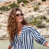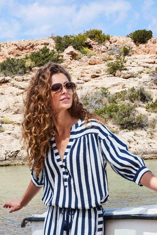 Stijlvol Gestreept: Blouse Lot Stripe Stel je voor: een warme dag, helderblauwe lucht, en het perfecte kledingstuk dat je frisse en elegante uitstraling accentueert. De Blouse Lot Stripe is precies dat kledingstuk. Met haar driekwart mouwen en luchtige, rechte pasvorm biedt deze blouse alle comfort die je zoekt. De V-hals geeft een subtiele, verfijnde uitstraling, terwijl de frisse witte basis met een opvallend gestreept patroon een eigentijdse twist geeft. Perfect om je in alle vrijheid door de lentedagen te bewegen! Gemaakt van Hoogwaardige Stof De Blouse Lot Stripe is vervaardigd uit hoogwaardige materialen die zowel duurzaam als ademend zijn. De stof voelt zacht aan op de huid, ideaal voor zonnige dagen als je een lichte en luchtige touch wilt ervaren. Deze blouse biedt een uitstekende balans tussen comfort en stijl, zodat je je altijd op je gemak en trendy voelt. Stijladvies Deze veelzijdige blouse kun je moeiteloos combineren met een heerlijke broek of een jeans voor een casual look. Voeg een paar accessoires toe, zoals een opvallende armband of een stijlvolle zonnebril, en je bent klaar om te stralen op elke gelegenheid. Wasvoorschrift Wassen: Was de Blouse Lot Stripe op 30 graden om de kwaliteit van de stof te behouden en de kleuren fris te houden. Drogen: Niet in de droger. Hang de blouse uit om te drogen, waardoor je de vorm en pasvorm het beste behoudt. Strijken: Strijk op lage temperatuur om ongewenste kreukels glad te strijken en de stof soepel en netjes te houden. Vermijd bleken en chemisch reinigen om de levendigheid van de strepen te behouden. Trek de Blouse Lot Stripe aan en laat je inspireren door haar combinatie van comfort en frisse elegantie. Perfect voor elke gelegenheid wanneer de dagen langer en zonniger worden.