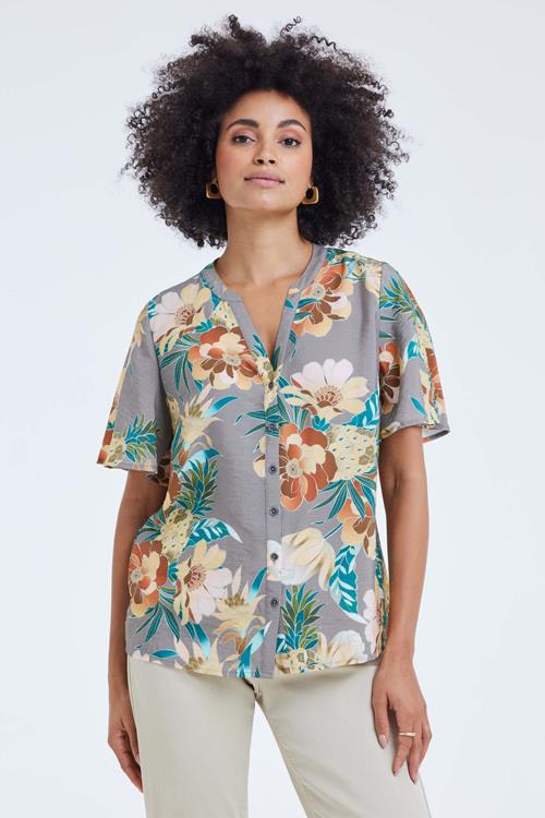 Blouse Manna Taupe Rising Sun Print: Tijdloze Elegantie Dompel je onder in de verfijnde uitstraling van de Blouse Manna Taupe Rising Sun Print. Deze prachtige blouse is uitgevoerd in zachte beige en bruine tinten en straalt een natuurlijke elegantie uit. Dankzij het luchtige design met korte mouwen en een rechte pasvorm, geniet je van ultiem comfort zonder in te boeten op stijl. De subtiele V-hals en knoopsluiting geven een verfijnde touch, perfect voor zonnige dagen vol energie en optimisme. Deze blouse maakt elke outfit sprankelend en fris. Gemaakt van hoogwaardige stof Gemaakt van 100% viscose, biedt de blouse een zachte, zijdeachtige aanraking die heerlijk aanvoelt op de huid. Viscose is bekend om zijn ademende en absorberende eigenschappen, ideaal voor warmere dagen. Deze stof houdt je koel en zorgt voor een comfortabele draagervaring. Bovendien heeft viscose een prachtige vloeiende val, waardoor de blouse moeiteloos elegantie uitstraalt. Stijladvies Combineer de Blouse Manna Taupe Rising Sun Print met een lekker zittende broek of je favoriete jeans voor een chique casual look. Door de veelzijdige kleuren en het speelse dessin, past deze blouse perfect bij zowel neutrale als opvallende accessoires. Of je nu een koffiedate hebt of naar kantoor gaat, je ziet er altijd stijlvol en zelfverzekerd uit. Wasvoorschrift Wasvoorschrift: Was de blouse met de hand of in de machine op een koud programma om de kwaliteit te behouden. Gebruik bij voorkeur een mild wasmiddel om de kleuren en de stof te beschermen. Droogvoorschrift: Hang de blouse op aan een kledinghanger om te drogen, vermijd direct zonlicht om verkleuring te voorkomen. Strijkvoorschrift: Strijk de blouse indien nodig op een lage temperatuur. Door de delicate aard van viscose, is het aan te raden om de stof lichtvochtig te strijken voor een optimaal resultaat. Geniet elke dag opnieuw van de verfijnde charme van de Blouse Manna Taupe Rising Sun Print en voeg een vleugje stijl toe aan je garderobe.