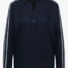 Deze CECIL blouse voor dames heeft klassieke elementen zoals een overhemdkraag en knoopdetail, gecombineerd met sportieve tape-accenten op de mouwen. De zachte viscose en zijsplitten maken het een veelzijdige allrounder voor op kantoor en in de vrije tijd.