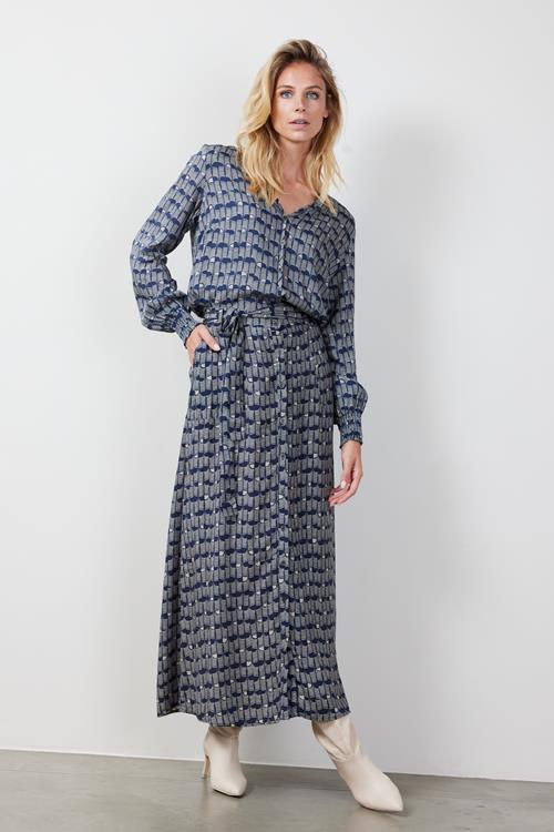 Blouse Party Dark blue Glow print: Stralend Elegantie De Blouse Party Dark blue Glow print is een perfecte aanvulling voor je kledingkast. Met zijn diepe blauwe tinten en unieke Glow print is deze blouse een echte blikvanger. De lange mouwen en rechte pasvorm maken het een comfortabel en veelzijdig kledingstuk, ideaal voor die gezellige en warme dagen. De gesmockte manchetten geven een speelse touch, terwijl de V-hals zorgt voor een elegante uitstraling. Laat je stralen in elke gelegenheid met deze prachtige blouse. Gemaakt van hoogwaardige stof Gemaakt van 100% viscose, biedt de Blouse Party Dark blue Glow print een zachte en soepele textuur die aangenaam aanvoelt op de huid. De stof ademt goed, waardoor het perfect is om te dragen tijdens die koelere dagen. Viscose valt mooi en behoudt zijn kleur, zelfs na meerdere keren wassen, wat betekent dat je nog lang kunt genieten van de levendige print en kleur. Stijladvies Met de Blouse Party Dark blue Glow print kun je eindeloos combineren. Draag hem op een mooie broek of een jeans voor een casual maar stijlvolle look. Deze blouse leent zich uitstekend voor zowel een dag op kantoor als een avondje uit. Voeg wat subtiele accessoires toe om je outfit compleet te maken. Wasvoorschrift Was instructie: Was de blouse op 30 graden om de kwaliteit en kleur te behouden. Vermijd het gebruik van bleekmiddel om de stof niet te beschadigen. Droogvoorschrift: Hang de blouse op om te drogen. Het is niet aan te raden om deze in de droger te stoppen, om krimp te voorkomen. Strijkvoorschrift: Strijk de blouse op een lage temperatuur om de stof glad te maken. Zo blijft de blouse er als nieuw uitzien en behoudt hij zijn elegante val. Met de Blouse Party Dark blue Glow print kies je voor stijl en comfort in één, klaar om te stralen in elk seizoen.