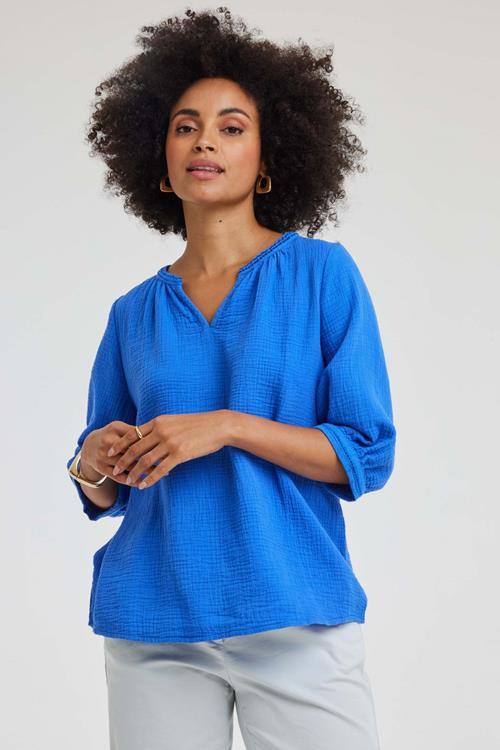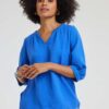 Blouse Salina Ampora blue: Tijdloze Elegantie De Blouse Salina Ampora blue is jouw nieuwe favoriet voor de zonnige dagen die komen gaan. Met een frisse blauwe kleur en een luchtig ontwerp, is deze blouse ideaal voor wanneer de temperatuur stijgt. De driekwart mouwen en de rechte pasvorm zorgen voor een casual, maar stijlvolle uitstraling. De elegante V-hals biedt een subtiel en vrouwelijk accent. Gemaakt van hoogwaardige stof Deze blouse is vervaardigd uit 100% katoen, wat zorgt voor een ademend en zacht gevoel op de huid. Katoen is van nature vochtabsorberend en hypoallergeen, wat het tot een ideale keuze maakt voor warme dagen. Het materiaal draagt bij aan een langdurige kwaliteit, waardoor je seizoen na seizoen kunt genieten van dit kledingstuk. Stijladvies De veelzijdige Blouse Salina Ampora blue laat zich gemakkelijk combineren met verschillende stijlen. In combinatie met een lekkere broek of een casual jeans, creëer je een relaxte maar toch verfijnde look. Voeg enkele accessoires toe om je outfit helemaal af te maken. Wasvoorschrift Was instructie: Om de kwaliteit van het katoen te behouden, was je de blouse op 30 graden. Vermijd bleekmiddelen om de kleur te behouden. Droogvoorschrift: Hang de blouse uit om te drogen en vermijd de droger om krimping te voorkomen. Strijkvoorschrift: Strijk de blouse op lage temperatuur om de stof glad te houden en ongewenste kreukels te verwijderen. Met de Blouse Salina Ampora blue ben je klaar voor de zonnige momenten en geniet je van comfort en stijl in één.