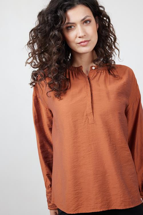 Blouse Sari Ginger Brown: Tijdloze Elegantie De Blouse Sari Ginger Brown is jouw perfecte metgezel voor de koudere dagen. Met zijn prachtige beige en bruine tinten voegt deze blouse een vleugje stijl toe aan elk ensemble. Het model is voorzien van lange mouwen en een rechte pasvorm, afgewerkt met een klassieke ronde hals en een chique knoopsluiting. De veelzijdigheid van deze blouse maakt hem geschikt voor zowel werk als vrije tijd. Gemaakt van hoogwaardige stof Het materiaal van de Blouse Sari Ginger Brown voelt zacht aan op de huid en biedt optimaal comfort. Dankzij de hoogwaardige stof blijft de blouse mooi in vorm, zelfs na meerdere wasbeurten. Het ademende vermogen van het materiaal zorgt ervoor dat je de hele dag comfortabel blijft, terwijl de duurzame constructie een lange levensduur garandeert. Stijladvies Combineer de Blouse Sari Ginger Brown moeiteloos met een lekkere broek of je favoriete jeans voor een casual, maar elegante look. De neutrale kleuren zorgen ervoor dat je eenvoudig kunt mixen en matchen met andere kledingstukken en accessoires in je garderobe. Wasvoorschrift Wasvoorschrift: Wassen op 30 graden om de kleur en vorm van de blouse te behouden. Droogvoorschrift: Niet in de droger. Laat de blouse aan de lucht drogen om krimpen of beschadiging te voorkomen. Strijkvoorschrift: Strijken op lage temperatuur. Dit houdt de stof soepel en behoudt de glans van de kleuren. Met de Blouse Sari Ginger Brown ben je altijd stijlvol en comfortabel gekleed. Zorg goed voor je blouse met het juiste wasvoorschrift en geniet van een tijdloos stuk dat altijd in de mode blijft.