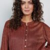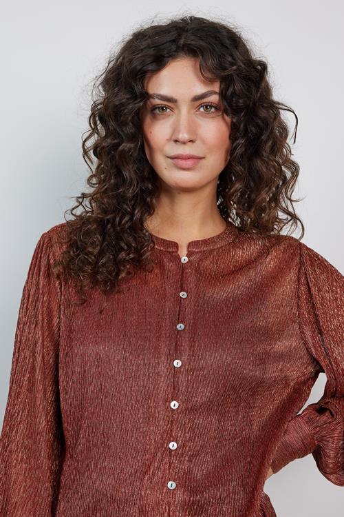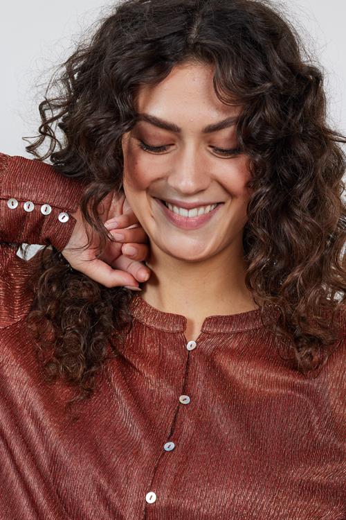 Unieke Elegantie met de Blouse Shimmer Dark bronze De Blouse Shimmer Dark bronze is jouw nieuwe favoriet voor de koelere maanden. Met zijn prachtige beige en bruine tinten en lange mouwen, is deze blouse perfect voor een stijlvolle uitstraling. De rechte pasvorm en de ronde hals zorgen voor een klassieke look, terwijl de knoopsluiting een vleugje elegantie toevoegt. Dit veelzijdige kledingstuk past perfect bij zowel een damesrok als een damesjurk, waardoor je eindeloos kunt combineren. Gemaakt van hoogwaardige stof Deze blouse is gemaakt van 100% polyester, wat niet alleen zorgt voor een stijlvolle uitstraling maar ook voor comfort. Polyester staat bekend om zijn duurzaamheid en kleurvastheid, waardoor de blouse zijn prachtige glans behoudt. Het materiaal voelt zacht aan op de huid en is gemakkelijk te onderhouden, wat ideaal is voor jouw drukke leven. Stijladvies Combineer de Blouse Shimmer Dark bronze met een elegante damesrok voor een chique uitstraling of draag hem met een casual damesjurk voor een meer ontspannen sfeer. Voeg enkele subtiele accessoires toe om je outfit compleet te maken. Deze blouse is een perfecte match voor zowel formele als informele gelegenheden. Wasvoorschrift Wasvoorschrift: Was de blouse binnenstebuiten in de machine op een lage temperatuur om de stof en kleur te behouden. Droogvoorschrift: Laat het kledingstuk aan de lucht drogen om krimp te voorkomen. Strijkvoorschrift: Strijken is mogelijk op een lage temperatuur, indien nodig. Door de elegantie en veelzijdigheid van de Blouse Shimmer Dark bronze geef je elke outfit een stijlvolle twist. Voeg deze must-have aan je collectie toe en geniet van de vele complimenten die je zult ontvangen.