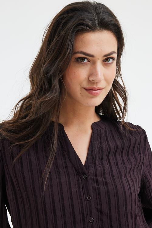Blouse Terre Chocolate brown: Tijdloze Elegantie De Blouse Terre Chocolate brown combineert moeiteloos tijdloze schoonheid met moderne flair. In een prachtige combinatie van beige en bruin, straalt deze blouse een warme, aardse charme uit. Met zijn rechte pasvorm en lange mouwen biedt hij zowel stijl als comfort. De elegante V-hals en de subtiele knoopsluiting maken het tot een veelzijdig kledingstuk dat perfect is voor de koelere maanden. Ideaal om je look een verfijnd tintje te geven, ongeacht de gelegenheid. Gemaakt van hoogwaardige stof De Blouse Terre Chocolate brown is vervaardigd uit een hoogwaardig materiaal van 83% viscose, 15% nylon en 2% elasthan. Deze samenstelling zorgt voor een comfortabele draagervaring met voldoende stretch voor bewegingsvrijheid. Viscose geeft de blouse een zijdezachte glans en een luxueuze uitstraling, terwijl nylon zorgt voor duurzaamheid. De elasthan biedt een lichte elasticiteit, waardoor de blouse soepel om het lichaam valt. Perfect voor dagen waarop je behoefte hebt aan een vleugje elegantie zonder concessies te doen aan comfort. Stijladvies Voor een verfijnde, maar moeiteloze outfit, combineer de Blouse Terre Chocolate brown met een lekkere broek of je favoriete jeans. De ingetogen kleuren zorgen ervoor dat je eindeloos kunt variëren met accessoires. Voeg eventueel een mooie halsketting toe om de V-hals te accentueren. Deze blouse is een ideale keuze voor zowel een dag op kantoor als een avondje uit. Wasvoorschrift Wassen: Houd de hoogwaardige stof van de Blouse Terre Chocolate brown mooi door hem op 30 graden te wassen. Vermijd het gebruik van bleekmiddel en doe de blouse niet in de droger. Drogen: Hang de blouse uit om te drogen. Dit zorgt ervoor dat de stof mooi blijft en zijn oorspronkelijke vorm behoudt. Strijken: Mocht je willen strijken, doe dit dan op een lage temperatuur om de zacht glanzende kwaliteit van de viscose te behouden. Door dit eenvoudige onderhoud blijft je blouse er altijd als nieuw uitzien.