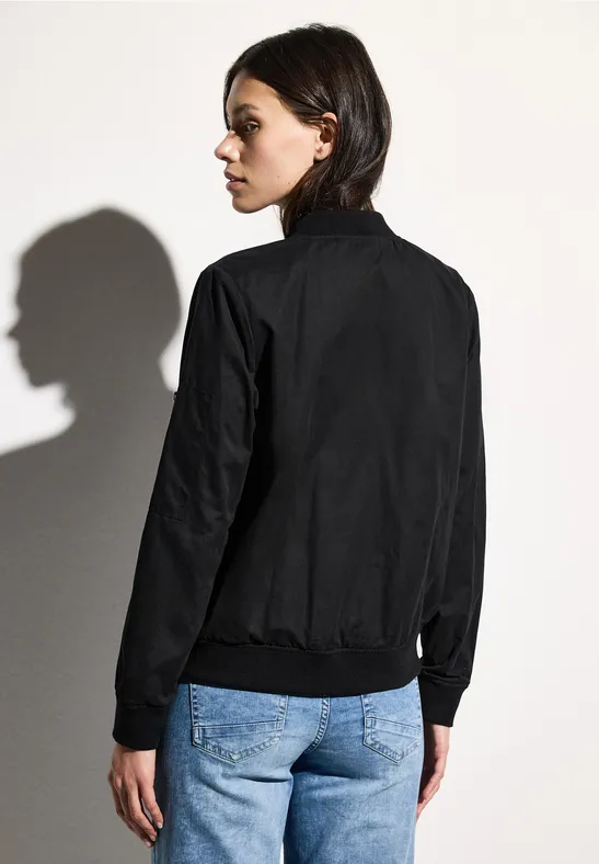 De CECIL blouson voor dames is een lichtgewicht sweatjack met opstaande kraag en steekzakken. Een ritsdetail op de lange mouwen voegt een modieus accent toe. De viscosemix met stretch zorgt voor een hoog draagcomfort.