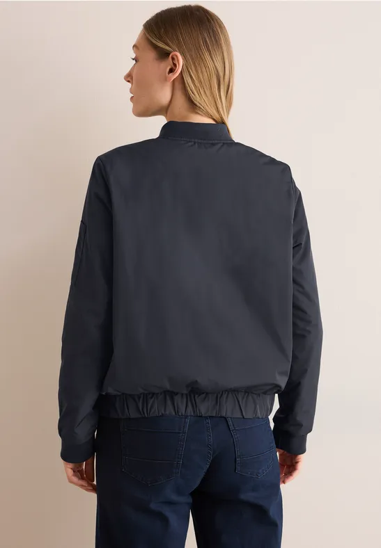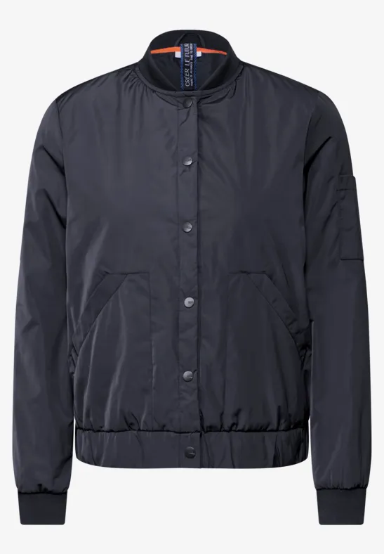 De CECIL blouson voor dames heeft een moderne opstaande kraag en casual knoopsluiting. Een elastische zoom en steekzakken zorgen voor comfort en een sportieve afwerking. Een stijlvolle allrounder met lange mouwen en fijne details.