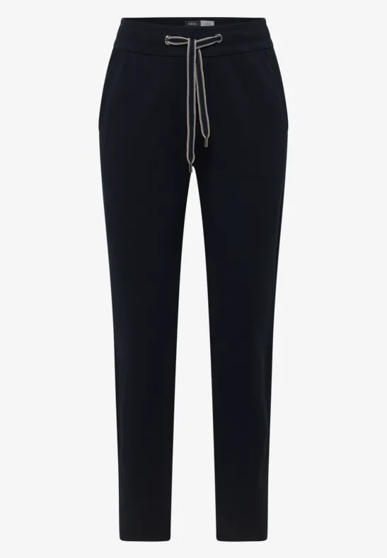Deze stoffen broek van CECIL in de stijl Tracey heeft een comfortabele casual pasvorm, Slim Legs en een elastische tailleband met een trekkoord. De zachte jerseystof van een viscosemix met stretch zorgt voor een comfortabele pasvorm. Effen en eenvoudig – een veelzijdige basic voor ontspannen alledaagse outfits.