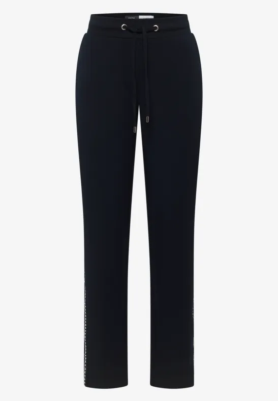 Deze stoffen broek van CECIL voor dames in het model Tracey ziet er sportief uit en heeft een banddetail opzij, een elastische tailleband met een aantrekkoord voor extra comfort en slanke pijpen voor een modern silhouet. De casual pasvorm zorgt voor een relaxte fit die op verschillende manieren gestyled kan worden. De zachte Silk Touch-stof is aangenaam om dragen – ideaal voor comfortabele alledaagse looks met een vleugje sportiviteit.