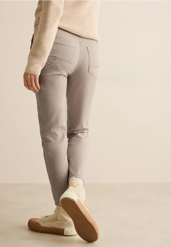 Deze CECIL Tracey-broek voor dames heeft een gewassen look en een Mid Waist-uitsnijding – een slim casual stuk met stijl. De lyocellmix met stretch biedt een comfortabele pasvorm, terwijl de elastische tailleband met trekkoord voor comfort zorgt. Ideaal voor casual en comfortabele looks.