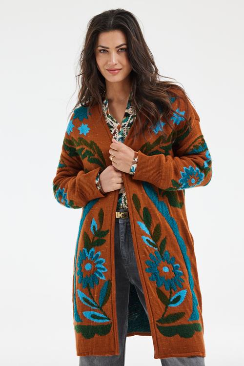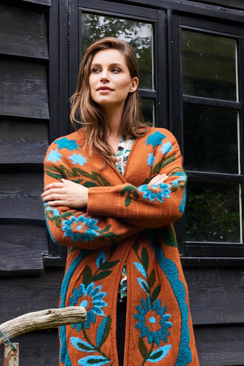 De perfecte combinatie: Cardigan Cocoon Pintura jacquard Introductie: Geef je garderobe een boost met de Cardigan Cocoon Pintura jacquard. Deze prachtige cardigan in een warme beige-bruine tint en een uniek patroon van fleurige bloemen, is perfect voor de koudere dagen. De lange mouwen en rechte pasvorm zorgen voor een comfortabel gevoel, terwijl de geribde boorden het geheel afmaken. Gooi hem over een outfit voor een gezellige en stijlvolle look die opvalt. Gemaakt van hoogwaardige stof Materiaal: De cardigan is vervaardigd uit 100% acryl, wat zorgt voor een zachte en warme ervaring. Acryl is licht van gewicht en toch heerlijk warm, waardoor het een ideale keuze is voor de koude maanden. Bovendien behoudt dit materiaal zijn kleur en vorm, zelfs na herhaaldelijk wassen, waardoor je lang plezier hebt van je aankoop. Stijladvies Stijl: Deze veelzijdige cardigan is een aanvulling op veel outfits. Combineer hem met een lekkere broek of jeans voor een casual chique uitstraling. Voor een iets verfijndere look, draag je hem over een leuke blouse. Voeg je persoonlijke touch toe en creëer moeiteloos een statement outfit. Wasvoorschrift Wassen: Om de kwaliteit en kleur van je cardigan te behouden, was je hem op 30 graden. Vermijd bleekmiddelen om het delicate patroon te beschermen. Droogvoorschrift: Droogtrommel is een no-go voor dit kledingstuk! Laat de cardigan plat drogen om de vorm en structuur te behouden. Strijkvoorschrift: Mocht je cardigan wat kreukels vertonen, strijk hem dan op lage temperatuur. Zo blijft hij er als nieuw uitzien. Geef jezelf dit seizoen de warmte en stijl die je verdient met de Cardigan Cocoon Pintura jacquard.
