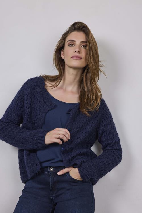 Warmte en Stijl met de Cardigan Varese Dark Blue Begeef je met deze stijlvolle Cardigan Varese Dark Blue in een wereld van comfort en elegantie. Ontworpen in een prachtige diepe blauwe kleur, is dit kledingstuk perfect voor koelere dagen. De knoopsluiting en de ronde hals geven de cardigan een klassieke uitstraling, terwijl de lange mouwen en rechte pasvorm zorgen voor ultiem draagcomfort. Combineer deze elementen voor een unieke en tijdloze look die je keer op keer wilt dragen. Gemaakt van Hoogwaardige Stof De Cardigan Varese Dark Blue is vervaardigd uit een hoogwaardige mix van materialen: 48% Acryl, 22% Mohair, 20% Polyamide en 10% Wol. Deze combinatie biedt een perfecte balans tussen stevigheid en warmhoudend vermogen, zonder afbreuk te doen aan het draagcomfort. De toevoeging van Mohair zorgt voor extra zachtheid, terwijl de wol een natuurlijke isolatie biedt, ideaal voor kouder weer. Polyamide geeft het geheel extra duurzaamheid, zodat je lang plezier hebt van deze eyecatcher. Stijladvies De veelzijdigheid van de Cardigan Varese Dark Blue maakt het een ideale aanvulling op je collectie. Het is prachtig te combineren met een lekkere broek of jeans of een leuke blouse. Het klassieke design laat zich gemakkelijk aanpassen aan zowel casual als meer formele settings. Maak je outfit compleet en schitter in stijl. Wasvoorschrift Wasvoorschrift: Om de kwaliteit van het materiaal te behouden, raden we aan de cardigan met de hand te wassen in koud water. Droogvoorschrift: Laat het plat drogen, weg van direct zonlicht, om de vorm en kleur te behouden. Strijkvoorschrift: Strijk op lage temperatuur indien nodig, om de delicate vezels te beschermen. De Cardigan Varese Dark Blue is een investering in stijl en comfort. Met zorg en aandacht gegarandeerd een duurzaam en veelzijdig kledingstuk in je kast.