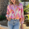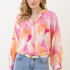 Deze blouse is mega stunning! De blouse is voorzien van een ronde hals, een knoopsluiting en een all-over print. Perfect toch?! Sizes: ONE SIZE, suitable for ladies with sizes S(36), M(38), L(40) Fit: valt oversizedModel: 173 cm and wears size One SizeDetails: ronde hals, knoopsluiting, pofmouwen and all-over print Material: 100% Viscose