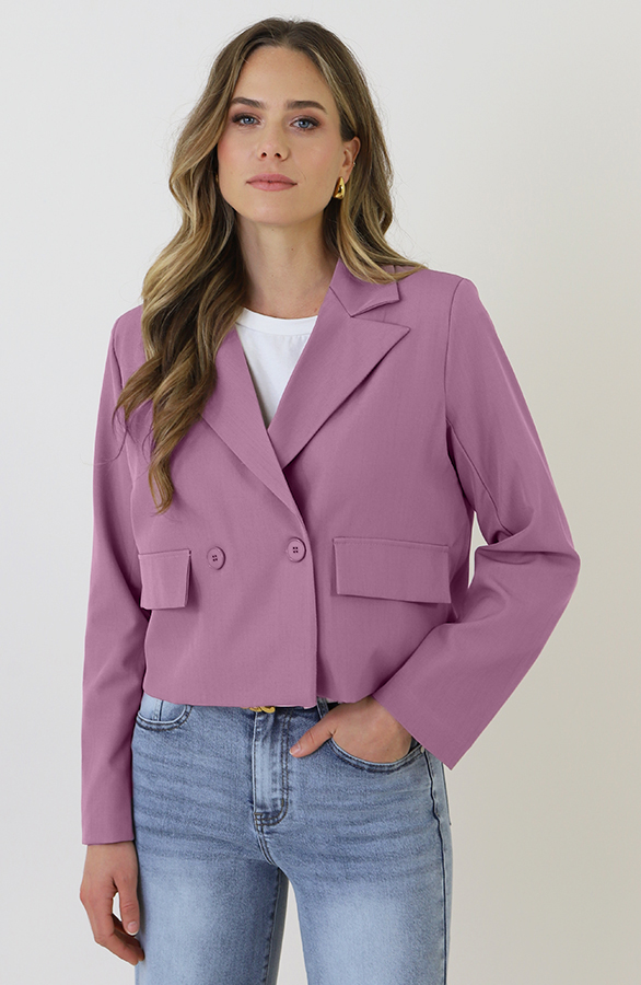 Deze cropped blazer heeft een moderne, verfijnde uitstraling met een dubbele knoopsluiting en praktische zakdetails. Een tijdloos, stijlvol item dat elke outfit direct een trendy touch geeft.Sizes: ONE SIZE, suitable for ladies with sizes S(36), M(38), L(40) Fit: valt als normaalModel: 178 cm and wears size One SizeDetails: knoopsluiting, nepzakken and cropped Materials: 5% Elastaan, 95% PolyesterWashing instructions: handwasFor best results: niet in de droger, geen wasverzachter