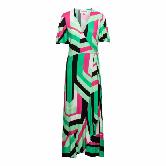 Lange jurk met vaste overslagtop van het merk &Co. Deze jurk heeft een allover retroprint, een korte uitlopende mouw en is gemaakt van 100% viscose.