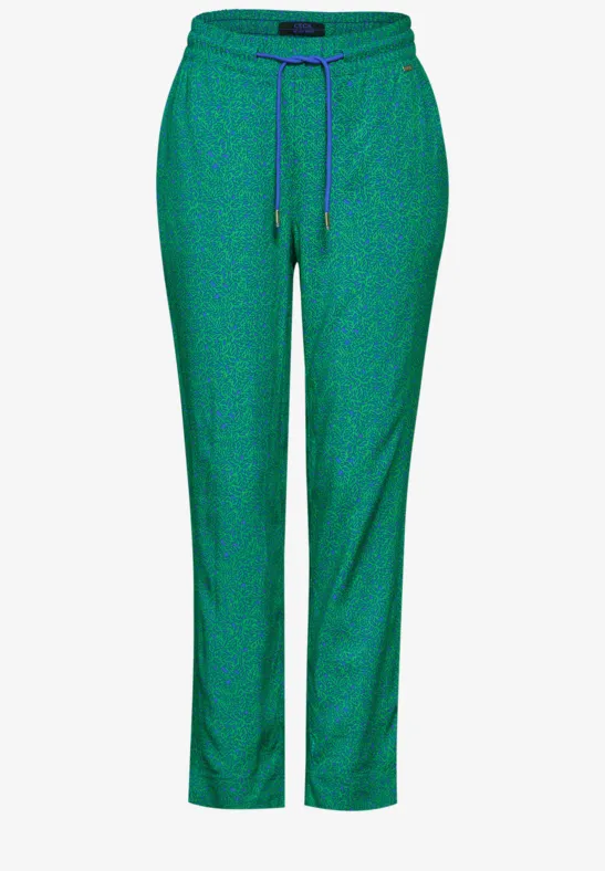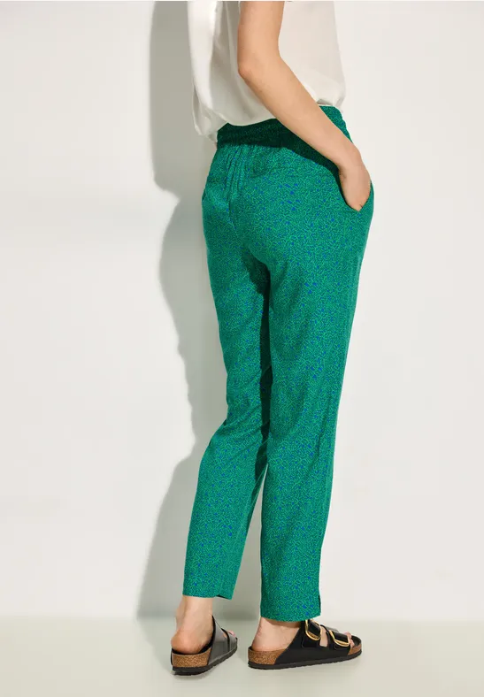 De comfortabele broek met print in style Tracey van CECIL voor dames is een joggingbroek in een casual pasvorm met een mid waist en slanke pijpen voor een moderne pasvorm. Dankzij de elastische tailleband en het trekkoord zorgt de broek voor comfort en flexibiliteit. Praktische steekzakken en de zachte viscosekwaliteit maken hem tot de ideale dagelijkse metgezel.
