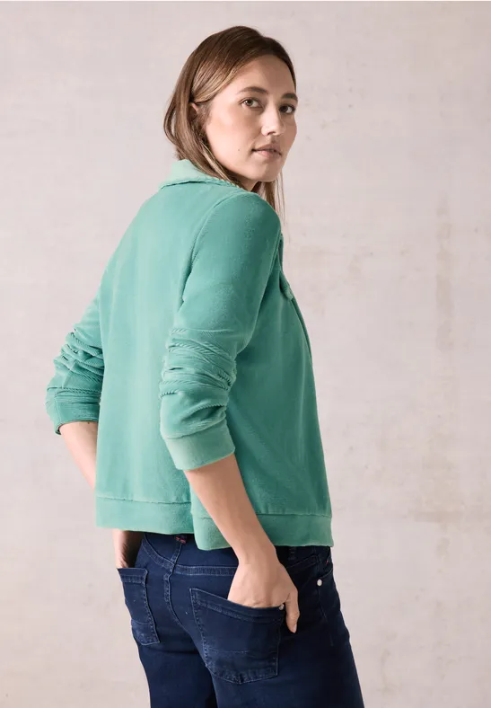 Het lichtgewicht corduroy jack van CECIL voor dames is gemaakt van een zachte katoenmix en is comfortabel om te dragen. De overhemdkraag met knoopsluiting en lange mouwen met manchetten maken het veelzijdig om te dragen. Perfect voor laagjes op frisse dagen.