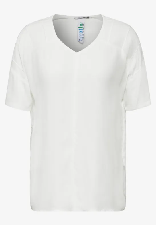 Met zijn fijne crêpestructuur en zachte viscose heeft deze blouse van CECIL een stijlvolle en ongecompliceerde look. De gespleten hals met bandjes en de afgeronde zoom geven hem een vrouwelijke look. Lichtgewicht lange mouwen voor je alledaagse stijl.