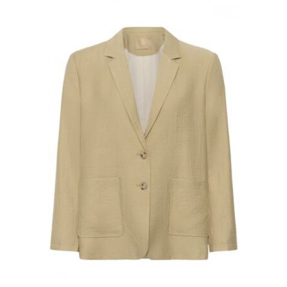 Stijlvolle blazer van het merk Culture in een zachte zandkleur. De subtiele structuur in de stof geeft het jasje een moderne en verfijnde uitstraling. De blazer heeft een rechte, licht losvallende pasvorm en is voorzien van een klassieke reverskraag en knoopsluiting met twee knopen. De opgestikte zakken aan de voorzijde zorgen voor een casual touch, terwijl de soepele stof comfortabel draagt en mooi valt.