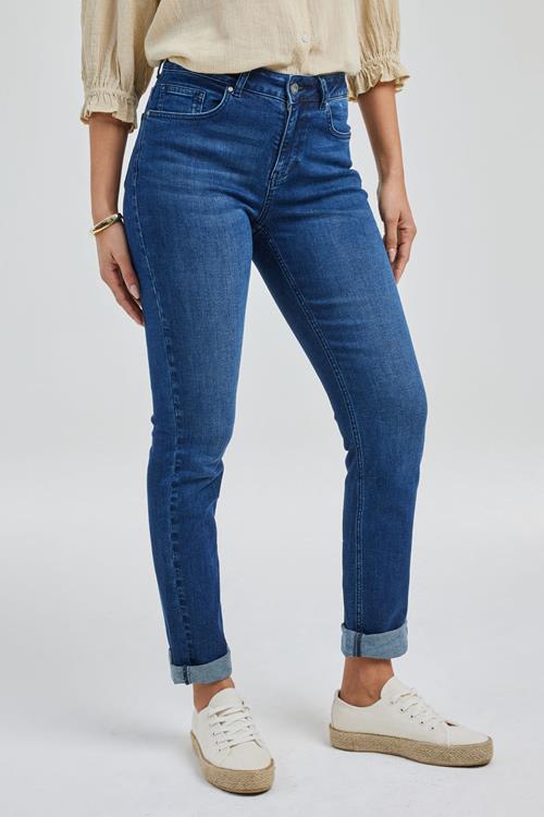 Denim pants Liv slim fit Dark blue: Perfecte Combinatie van Stijl en Comfort Ervaar het ultieme comfort en de tijdloze stijl met de Denim pants Liv slim fit Dark blue. Deze lange broek in een elegante blauwe kleur combineert op meesterlijke wijze een regular waist met een slim fit pasvorm, waardoor je stijlvol voor de dag komt. Met een praktische ritssluiting is deze broek ontworpen voor dagelijks gemak en duurzaamheid. Gemaakt van hoogwaardige stof De samenstelling van 98% katoen en 2% elasthan garandeert een duurzame, ademende en flexibele broek. Het katoen zorgt voor een zachte en comfortabele pasvorm, terwijl de elasthan de broek een subtiele stretch geeft, waardoor je altijd vrij kunt bewegen. Ideaal voor zowel een ontspannen middag als een actieve dag. Stijladvies Voor een moderne en casual look, combineer je de Denim pants Liv slim fit Dark blue met een trendy sweater. Deze broek past perfect bij je favoriete top voor elke gelegenheid. Tover je outfit om door de broek te combineren met een lekkere broek of jeans uit onze collectie. Wasvoorschrift Wasvoorschrift: Behoud de kwaliteit van je broek door te wassen op 30 graden. Dit houdt de kleur levendig en het materiaal sterk. Droogvoorschrift: Vermijd de droger om krimpen te voorkomen. Laat hem aan de lucht drogen voor het beste resultaat. Strijkvoorschrift: Strijk op een lage temperatuur om de vezels te beschermen en de juiste vorm te behouden. Niet bleken en niet chemisch reinigen om de stof in optimale conditie te houden. Met de Denim pants Liv slim fit Dark blue ben je altijd klaar om in stijl de deur uit te gaan.