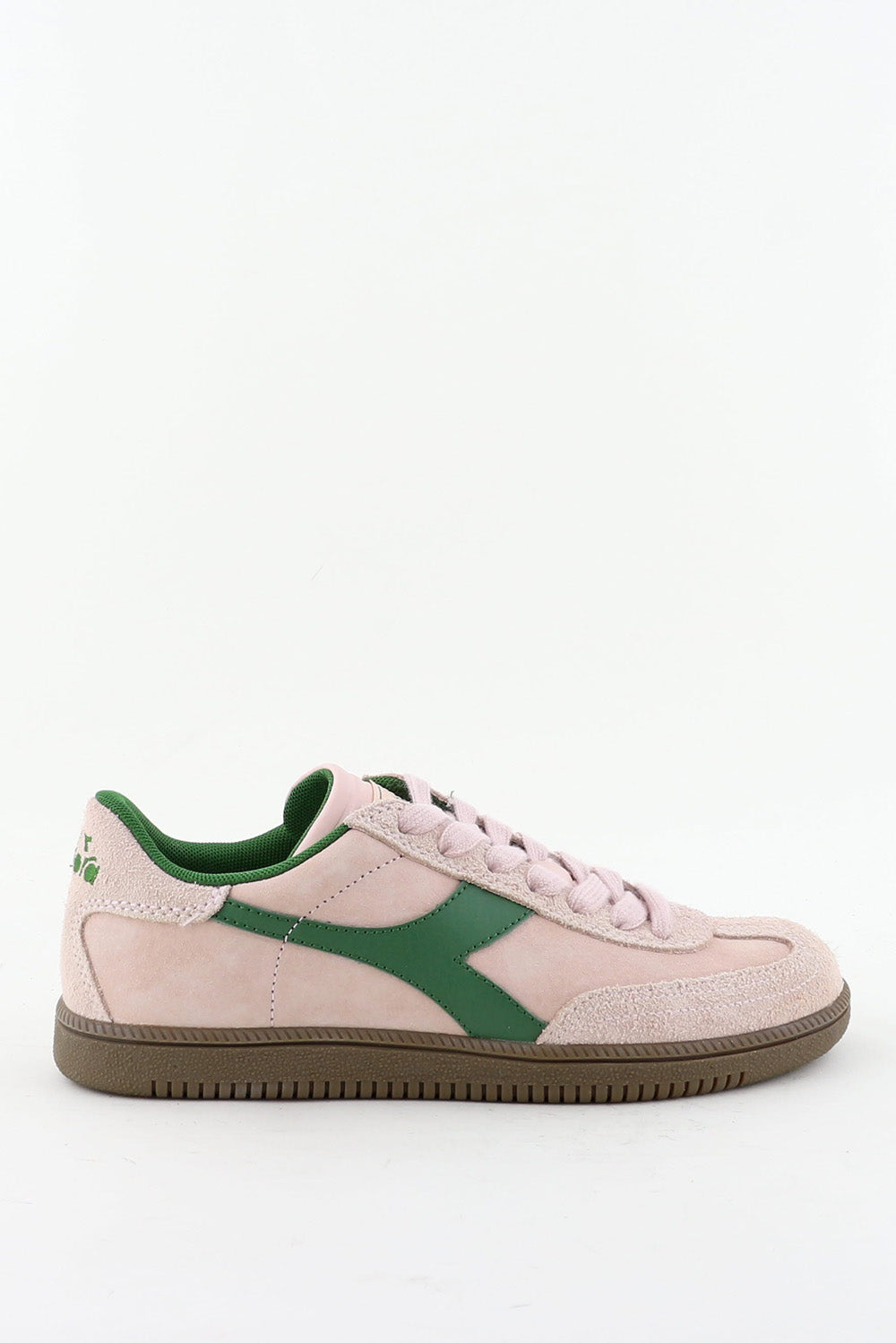 Dit zijn de roze sneakers Trainer Hairy van Diadora, met dat zachte bovenwerk in pink sand en de grove textuur bij de neus en veters. Het felgroene logo aan de zijkant geeft de schoen een frisse tegenkleur, mooi in lijn met de groene voering. De donkerbruine zool heeft een fijne ribbelrand die licht meeveert tijdens het lopen. Het mixen van leer en suede zorgt voor een stevige en toch soepele basis. Ze vallen een maat kleiner, dus een maat groter kan prettiger zitten. Diadora komt uit de Italiaanse sportwereld en die achtergrond zie je terug in de pasvorm en de zorg waarmee deze sneaker is opgebouwd.