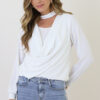Draped Waterfall Blouse Ecru