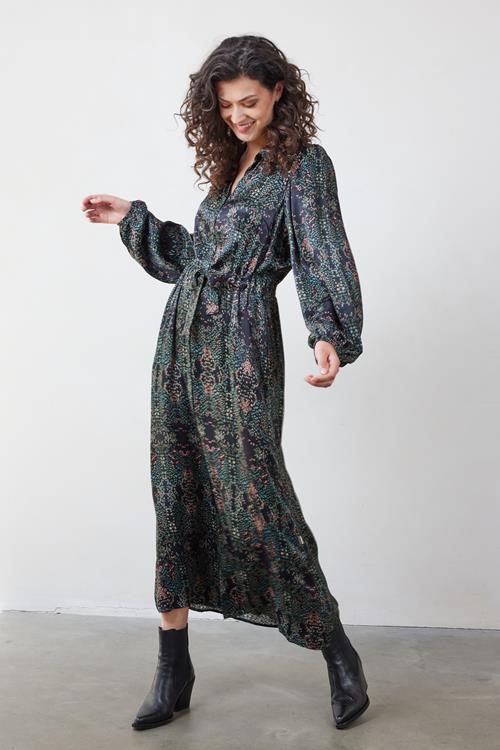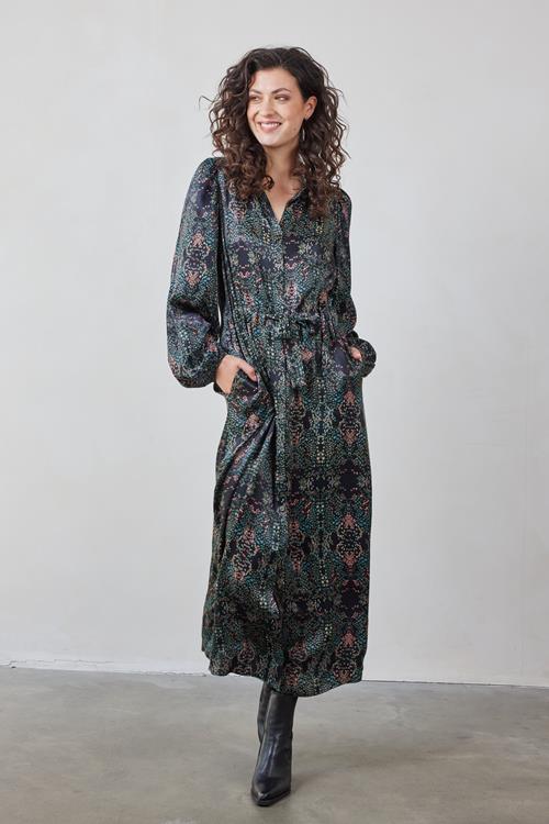 Dress Alinea Black Puntos Print: Elegantie en Comfort in Één Ervaar de verfijnde stijl van de Dress Alinea Black Puntos print, een must-have in je garderobe. Deze jurk combineert een klassieke kraag met een lange mouwlengte, waardoor hij perfect is voor de koelere maanden. Dankzij de zwart met grijs print creëer je een tijdloze look. De rechte pasvorm in combinatie met een handige knoopsluiting zorgt ervoor dat je je altijd comfortabel en stijlvol voelt, ongeacht de gelegenheid. Gemaakt van hoogwaardige stof De Dress Alinea Black Puntos print is vervaardigd uit 100% viscose, wat bekend staat om zijn ademende eigenschappen en zijdezachte textuur. Dit materiaal valt prachtig om het lichaam en biedt een comfortabele draagervaring. Ideaal voor warme winteravonden, de stof voelt zacht aan op de huid en geeft je die extra luxe touch. Stijladvies Deze jurk is veelzijdig te stylen. Draag hem met enkellaarsjes voor een casual look, of combineer hem met hakken voor een elegante avonduitstraling. Accessoires in zilver of zwart maken je outfit helemaal af. Of je nu naar kantoor gaat of een avondje uit, deze jurk past bij iedere situatie. Wasvoorschrift Wasvoorschrift: Om de kwaliteit van de viscose te behouden, was de jurk op een delicaat programma van 30 graden. Droogvoorschrift: Hang de jurk op een hanger en laat hem aan de lucht drogen om krimpen of vervormen te voorkomen. Strijkvoorschrift: Strijk de jurk indien nodig op lage temperatuur om de stof zacht en soepel te houden. Met deze jurk voeg je een veelzijdig en stijlvol item toe aan je collectie, zonder veel poespas of onderhoud.