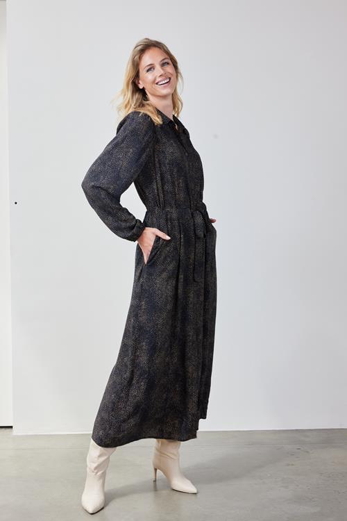 Dress Alinea Black Spectrum print: De perfecte blend van stijl en comfort Treed elegant en zelfverzekerd de koelere dagen tegemoet met de Dress Alinea Black Spectrum print. Deze prachtige jurk combineert een klassieke kraag met een recht model en lange mouwen, ideaal voor een stijlvolle en comfortabele look. De knoopsluiting voegt een tijdloos detail toe, terwijl de subtiele zwart/grijze print een veelzijdig statement maakt. Gemaakt van hoogwaardige stof Gemaakt van 100% viscose, valt de stof natuurlijk en soepel, wat bijdraagt aan een comfortabele pasvorm. Viscose voelt zacht aan op de huid en ademt goed, waardoor het perfect is voor zowel binnen als buiten. De kwaliteit van het materiaal zorgt ervoor dat je seizoen na seizoen van deze jurk kunt genieten. Stijladvies De Dress Alinea Black Spectrum print is ideaal te combineren met een paar laarzen voor een chique uitstraling. Voeg een stijlvolle riem toe om je taille te accentueren, of draag hem los voor een ontspannen, doch elegante look. Of je nu naar kantoor gaat of een avondje uit, deze jurk past bij elke gelegenheid. Wasvoorschrift Wassen: Was de jurk op een delicaat programma in koud water om de kwaliteit en kleur te behouden. Drogen: Hang de jurk op om te drogen, vermijd de droger om krimpen te voorkomen. Strijken: Strijk de jurk op een lage temperatuur aan de binnenkant voor het beste resultaat. Deze Dress Alinea Black Spectrum print biedt niet alleen comfort maar ook veelzijdigheid en stijl. Voeg deze jurk toe aan je garderobe en geef je look een verfijnde touch.