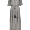 Verrassend veelzijdig met de Dress Jazzy Separe print De Dress Jazzy Separe print is jouw nieuwe favoriete aanwinst voor de warmere dagen van het jaar. Deze jurk, uitgevoerd in een elegant zwart/grijze print, heeft een rechte pasvorm die moeiteloos om je heen valt. Met een charmante V-hals en korte mouwen biedt de jurk een luchtige en modieuze uitstraling. Dankzij de subtiele knoopsluiting aan de voorzijde en de regular waist, straal je nonchalant zelfvertrouwen uit bij elke gelegenheid. Gemaakt van hoogwaardige stof Gemaakt van 100% rayon is de Dress Jazzy Separe print niet alleen een feest voor het oog maar ook uiterst comfortabel. Rayon is een ademende stof, perfect voor die warme lentedagen of zwoele zomeravonden. Het voelt zacht aan op de huid en zorgt ervoor dat de jurk mooi in model blijft, zelfs na meerdere wasbeurten. Laat je omarmen door de luxe zachtheid van deze kwalitatieve stof, voor een ultieme draagervaring. Stijladvies De Dress Jazzy Separe print combineert prachtig met zowel casual als chiquere accessoires. Draag de jurk met stijlvolle sandalen voor een ontspannen dagje uit of met hoge hakken en subtiele sieraden voor een avond uit. Een eenvoudige clutch en zonnebril maken je look helemaal af. Perfect voor elke gelegenheid, van een dagje shoppen tot een etentje bij zonsondergang. Wasvoorschrift Wassen: Om je jurk zo lang mogelijk mooi te houden, adviseren we om deze met de hand te wassen of op een fijnwasprogramma. Zo behoud je de kleur en structuur van de stof. Drogen: Laat de jurk liggend drogen, bij voorkeur op een vlakke ondergrond om vormverlies te voorkomen. Vermijd drogers om krimpen tegen te gaan. Strijken: Strijk de jurk op lage temperatuur om kreukels te verwijderen zonder de delicate stof te beschadigen. Gebruik een strijkdoek om extra bescherming te bieden. Zo geef je jouw Dress Jazzy Separe print de zorg die hij verdient en geniet je jarenlang van zijn tijdloze charme.