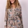 Dress Joyful Taupe Mazzo print: Tijdloze Elegantie De Dress Joyful Taupe Mazzo print is jouw perfecte metgezel voor zonnige dagen. Met zijn beige en bruine tinten en levendige print straalt deze jurk een subtiele elegantie uit. De lange mouwen en rechte pasvorm maken hem geschikt voor zowel casual als formele gelegenheden. Daarnaast biedt de knoopsluiting een verfijnde afwerking, terwijl de V-hals voor een moderne touch zorgt. Gemaakt van hoogwaardige stof Gemaakt van 100% viscose, biedt deze jurk je comfort en stijl. Viscose staat bekend om zijn ademende en zachte eigenschappen, waardoor het ideaal is voor warmere dagen. Het voelt licht aan op de huid en valt elegant, waardoor je altijd in stijl voor de dag komt. Stijladvies Combineer deze jurk met een paar sandalen voor een casual look, of kies voor hakken en subtiele sieraden voor een avondje uit. De veelzijdige print maakt het gemakkelijk om verschillende accessoires toe te voegen zonder de balans te verstoren. Wasvoorschrift Wasvoorschrift: Om de kwaliteit van de viscose te behouden, was je de jurk het beste binnenstebuiten op een programma voor fijne was op maximaal 30 graden. Droogvoorschrift: Laat de jurk liggend drogen om krimpen te voorkomen. Strijkvoorschrift: Strijken kan op een lage temperatuur, bij voorkeur terwijl de jurk nog licht vochtig is.