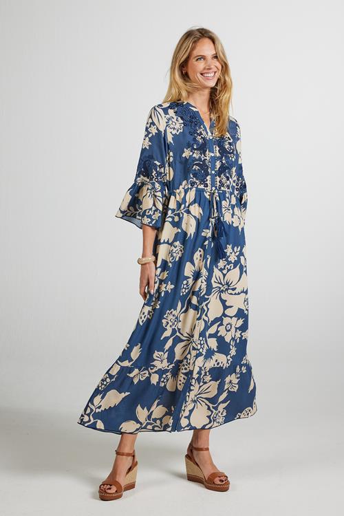 Dress Swing Darkblue Florique print – Elegantie voor elke gelegenheid Met de Dress Swing Darkblue Florique print voeg je een vleugje verfijning en stijl toe aan je garderobe. Deze jurk is uitgevoerd in een prachtige donkerblauwe tint met een Florique print die de aandacht trekt. Dankzij de driekwart mouwen en de rechte pasvorm biedt deze jurk comfort en elegantie in één. De V-hals en de knoopsluiting geven het ontwerp een extra stijlvolle touch, terwijl het taillekoordje ervoor zorgt dat je de jurk perfect kunt aanpassen aan je figuur. Gemaakt van hoogwaardige stof Deze jurk is vervaardigd van 100% rayon, een materiaal dat bekend staat om zijn lichte en ademende eigenschappen. Dankzij de luchtige structuur is deze jurk uitermate geschikt voor de warmere dagen, terwijl je er altijd verzekerd van bent dat je comfortabel en stijlvol voor de dag komt. Rayon zorgt eveneens voor een zachte en luxe uitstraling, waardoor je altijd en overal straalt. Stijladvies Combineer de Dress Swing Darkblue Florique print met mooie sandalen of hakken voor een elegante daglook. Voeg een paar subtiele sieraden toe om de Florique print nog meer te laten spreken. Of kies voor stijlvolle sneakers en een denim jasje voor een meer casual uitstraling. Welke stijl je ook kiest, met deze jurk ben je altijd in voor een stijlvolle verschijning. Wasvoorschrift Wasinstructie: Was de jurk op maximaal 30 graden om de stof en print mooi te houden. Droogvoorschrift: Niet in de droger. Laat de jurk liggend drogen om krimpen te voorkomen. Strijkvoorschrift: Strijk op lage temperatuur om de kwaliteit van het rayon te behouden en de Florique print te beschermen. Met de Dress Swing Darkblue Florique print ben je klaar voor elke gelegenheid in stijl en comfort. Voeg deze veelzijdige en elegante jurk toe aan je collectie en voel je op je best.