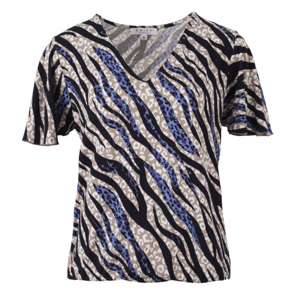 Blouson met allover dierenprint van het merk Enjoy. Deze blouson heeft een korte mouw, v-hals en elastisch boordje onderin.